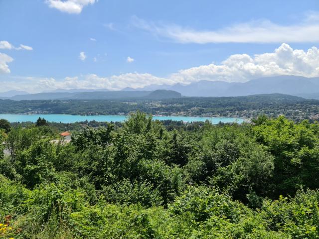 Wieder sind wir das nördliche Ufer des Wörthersees bis Pörtschach entlanggefahren, kurz danach geht es rechts hinauf zum Forstsee. Der Weg dorthin ist erneut ein einziger Genuss, es herrscht kaum Verkehr und wir fahren bewusst nur mit einem 50er dahin, so haben wir länger was davon 😊. Zum Forstsee selbst kommen wir dann gar nicht, denn erstens sehen wir nur einen Fußweg zum See abzweigen und zweitens haben wir gar nicht nach einer Zufahrt gesucht. Ilse würde nämlich sowieso keinen Fuß in eine Wiese oder so setzen, denn erst kürzlich ist ausgerechnet hier am Forstsee ein Kind von einer Hornviper gebissen worden. Das ist die giftigste Schlange überhaupt, die in Österreich heimisch ist. Na super. Eine Äskulapnatter haben wir schon oberhalb des Millstätter Sees gesehen, auf das Zusammentreffen mit Giftschlangen würden wir gerne verzichten. Also bleiben wir auf unserer Vespa sitzen und fahren weiter, so kommen wir zum Seissersee. Aber auch hier lässt sich auf die Schnelle keine Zufahrt finden, doch Ilse sieht den Seissersee zumindest im Vorbeifahren. Eh Schön. Uns ist ja gar nicht nach einer Pause, wir sind so fasziniert vom Fahren mit unserem Roller, dass wir stundenlang so dahincruisen könnten. Trotzdem, hin und wieder müssen die alten Knochen ein wenig ausrasten und wir tun das bei einem schönen Aussichtsplatz in Kanzelhofen.